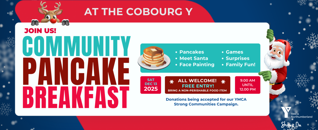Join us for a delightful Community Pancake Breakfast on Saturday, December 13th, from 9:00 am to noon! Revel in a morning of warmth and festivity as you indulge in fluffy pancakes, accompanied by coffee, tea, juice, and hot chocolate. It’s a joyous gathering for the whole community – come, connect, and celebrate the season with us! Entry free but we’re accepting donations to the Strong Communities Campaign and non-perishable items for the food bank.